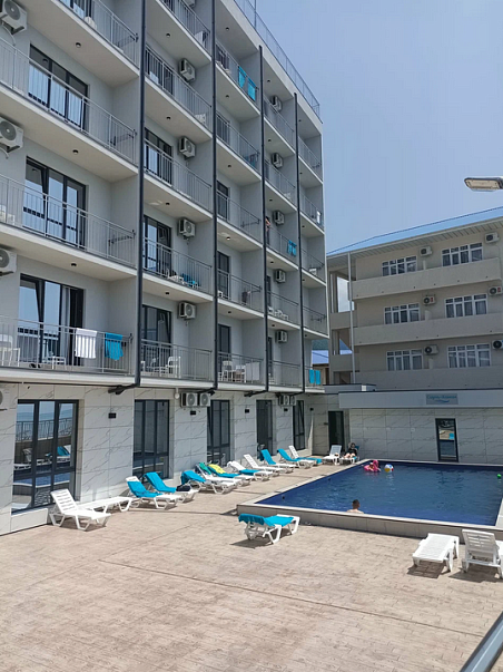 Отель "Бухта мечты"Отель Гагра, АбхазияОбщекурортный песчано-галечный пляж в 100м, 3-разовое питание по системе "шведский стол", промежуточное питание, открытый подогреваемый бассейн, детский клуб
