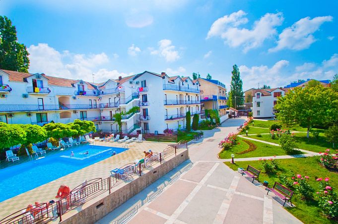 Отель «Рассветы Закаты» бывш. ЧерноморецОтель Песчаное, КрымСобственный песчаный пляж в 700 м, питание "Ультра Все включено", открытый подогреваемый бассейн, аквапарк, анимация.