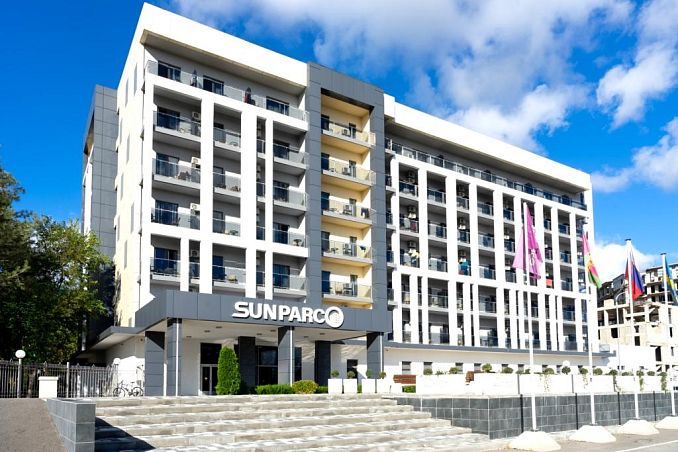 Отель "Санпарко/Sunparco" 4*Отель Центр Анапы, АнапаСобственный песчаный пляж в 250м, система "Все включено", шведский стол, промежуточное питание, бар, открытый бассейн, детский бассейн, анимация, Wi-Fi