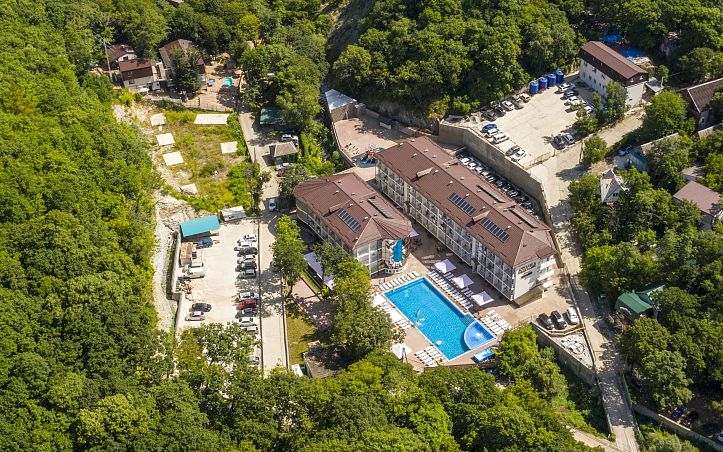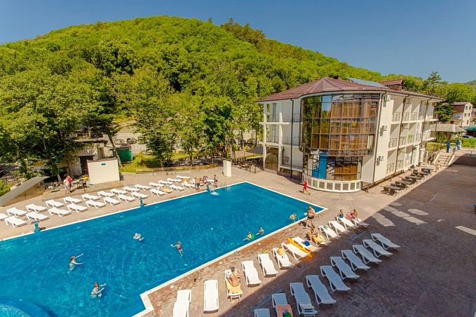 Курортный отель "Ателика Гранд Оазис" п.Бухта ИналОтель Бухта Инал, ТуапсеПоселковый мелкогалечный пляж в 300м, система "Все включено", шведский стол, промежуточное питание, бар, открытый бассейн, детская комната, анимация, Wi-Fi.
