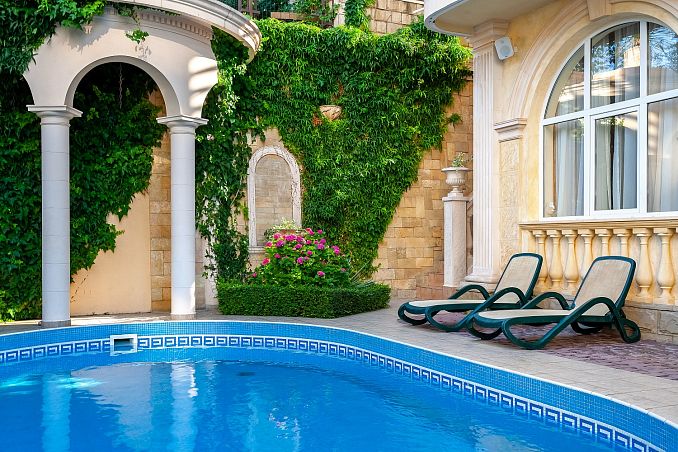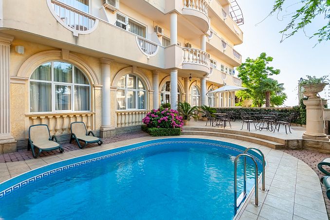 Арт-отель "Азор"Отель Ливадия, ЯлтаГородской галечный пляж в 30м., питание "шведский стол", крытый бассейн с морской водой, открытые бассейны