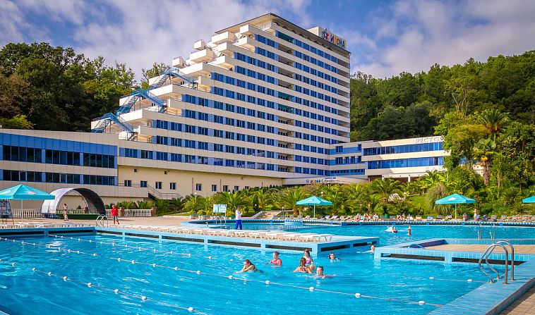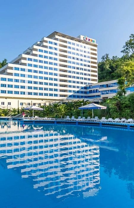 Пансионат с лечением "Нептун" (Адлеркурорт)Санаторий Адлер, СочиСобственный мелкогалечный пляж в 400м, питание "шведский стол", открытый бассейн с морской водой, детский клуб, Wi-Fi и парковка бесплатно