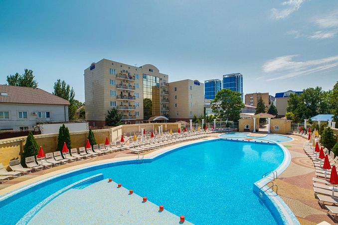 Санаторий "Надежда" г.АнапаСанаторий Центр Анапы, АнапаСобственный песчаный пляж в 600м, питание "шведский стол", открытый подогреваемый бассейн с морской водой, крытый бассейн с сауной, детский бассейн с горками, детская комната, ресторан и бар, Wi-Fi и парковка