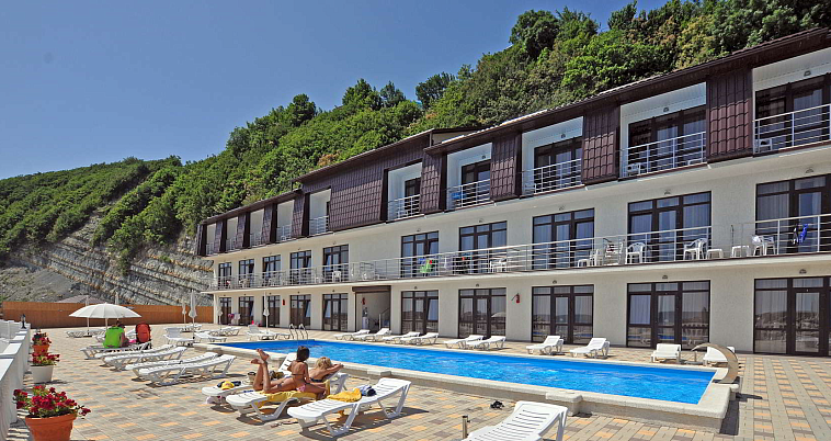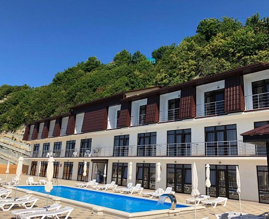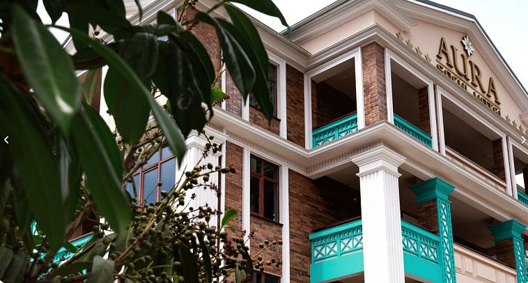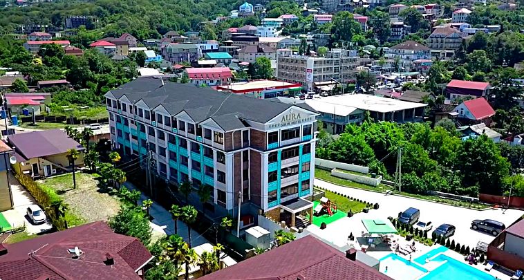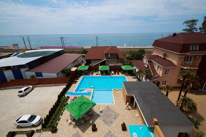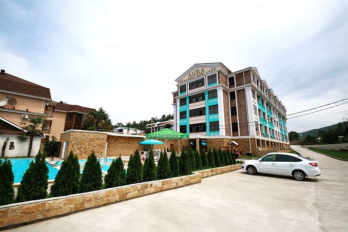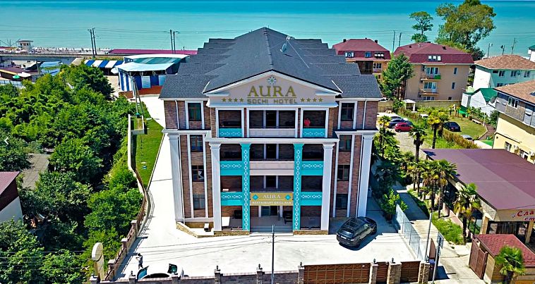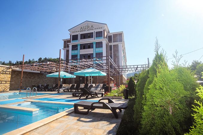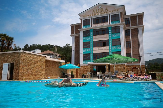 Отель "Аура"Отель Лоо, СочиПоселковый песчано-галечный пляж в 150м, питание "шведский стол", ресторан, открытый бассейн, детская комната и детская площадка, детская анимация, автостоянка, Wi-Fi на территории.
