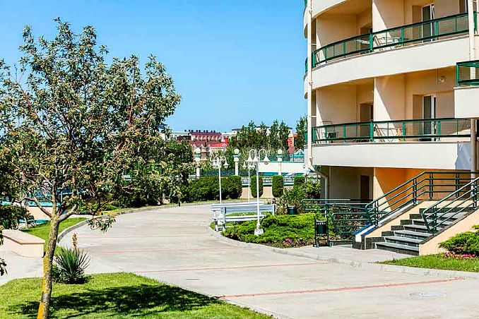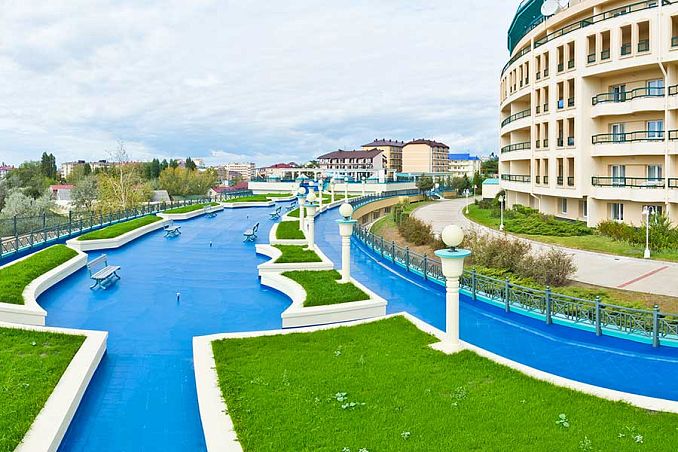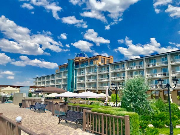 Отель "Ribera Resort & SPA"Санаторий Центр Евпатории, ЕвпаторияСобственный песчаный пляж в 10м, питание "шведский стол", открытый подогреваемый бассейн, крытый бассейн, анимация.