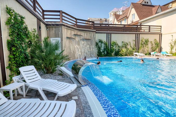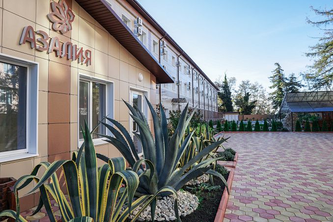 Отель "Азалия"Отель Адлер, СочиГородской галечный пляж в 900м, питание по системе "шведский стол", ресторан, открытый бассейн с подогревом, детская комната, автостоянка, Wi-Fi