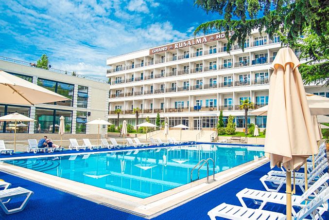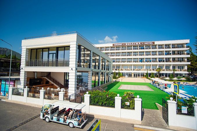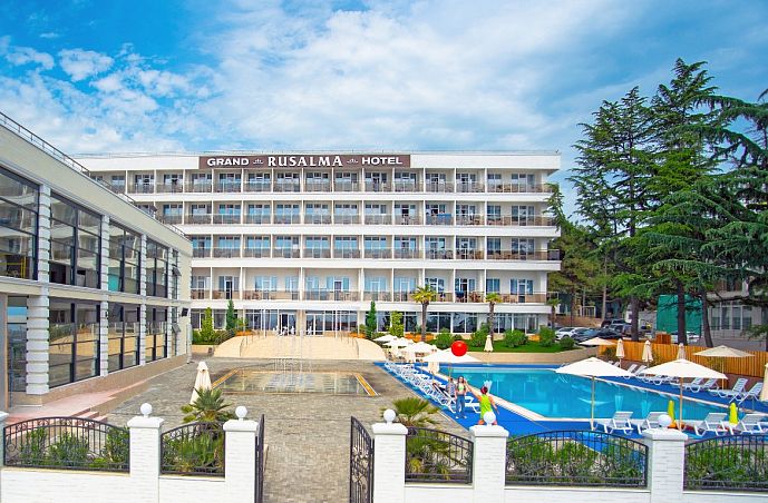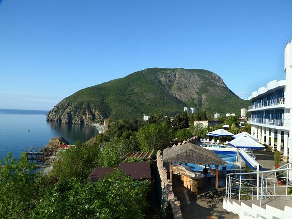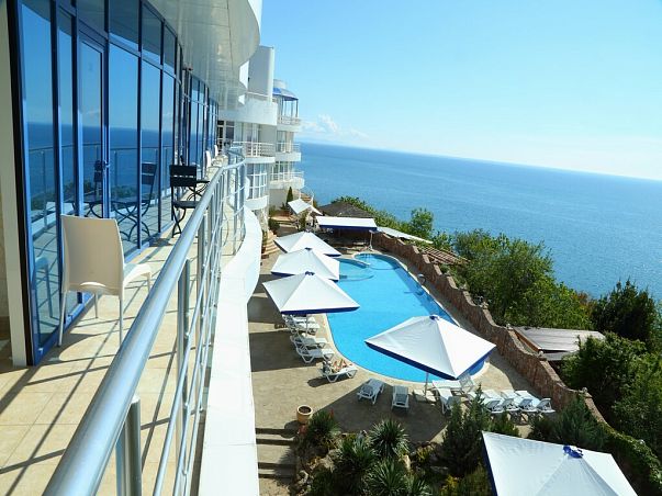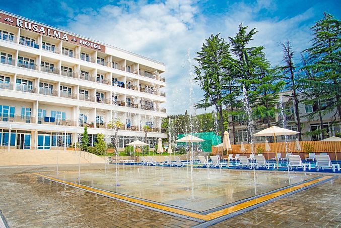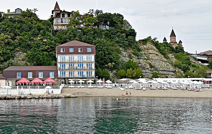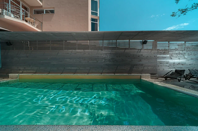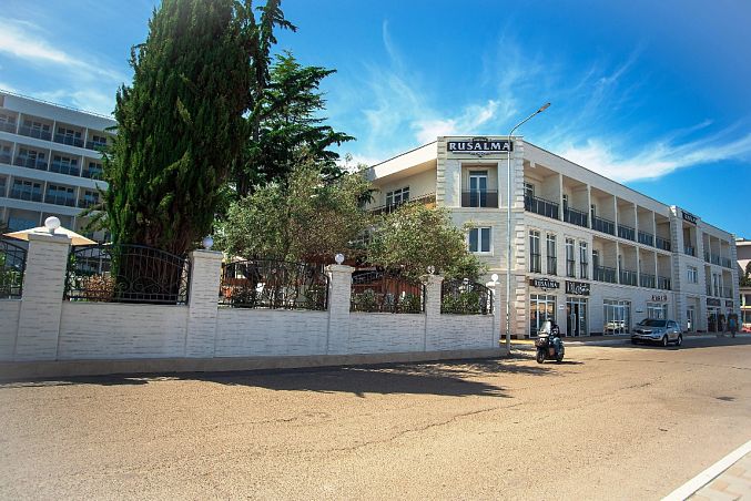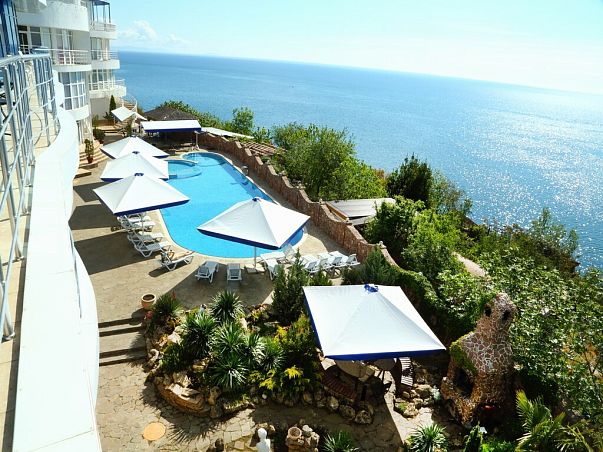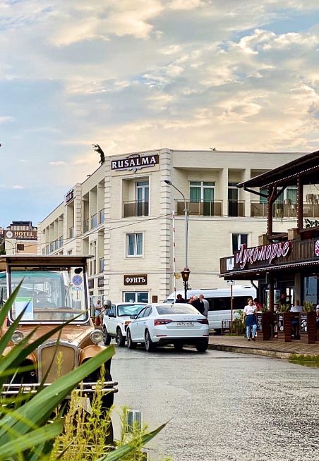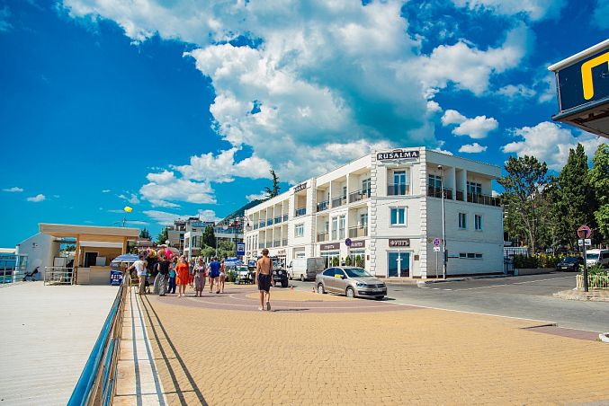 Отель "Русалма"Отель Центр Алушты, АлуштаСобственный мелкогалечный в 20м, питание "шведский стол", открытый подогреваемый бассейн, крытый бассейн с морской водой.