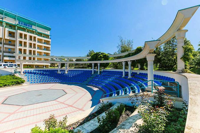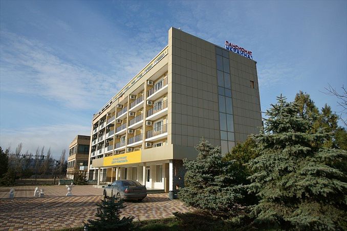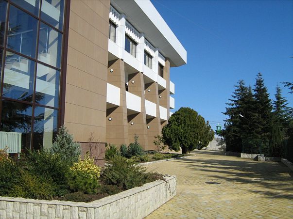 Пансионат с лечением «Украина-1»Пансионат Центр Феодосии, ФеодосияСобственный песчаный пляж в 50м, 3-разовое питание, крытый бассейн с морской водой.