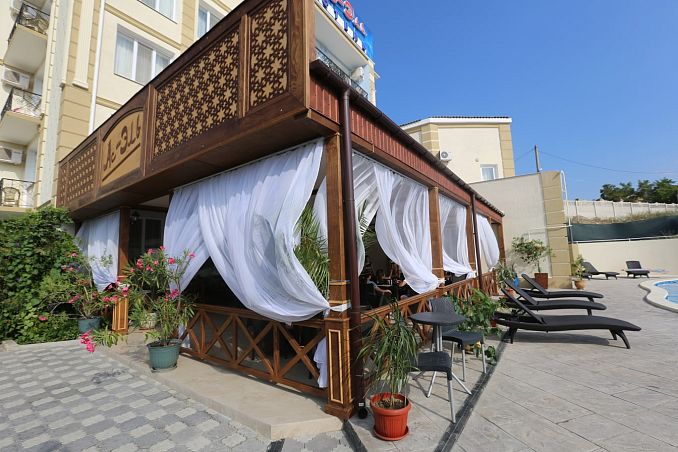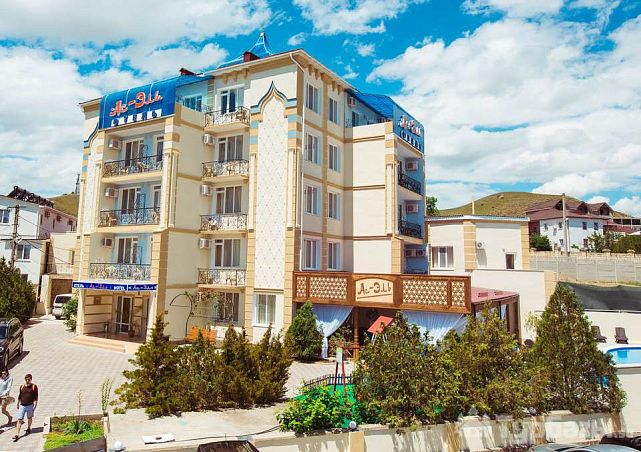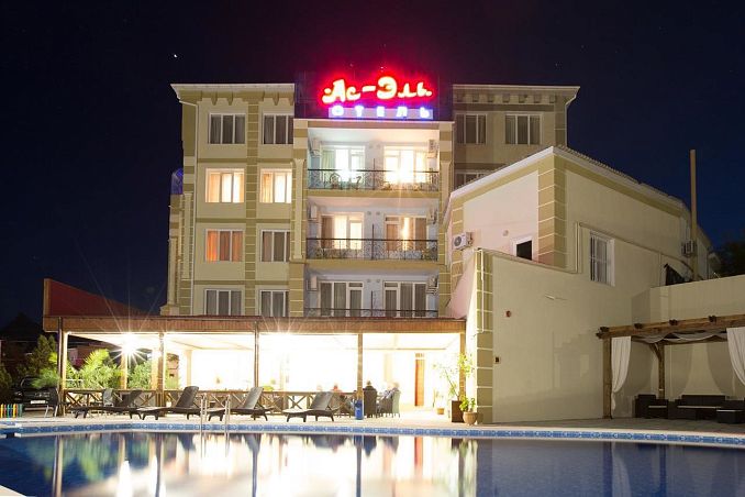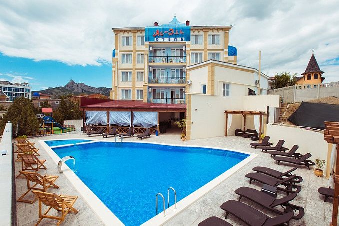 Гостиница «Аc-Эль»Отель Коктебель, ФеодосияПоселковый галечный пляж, завтрак "шведский стол", открытый бассейн с пресной водой, кафе, анимация детей.