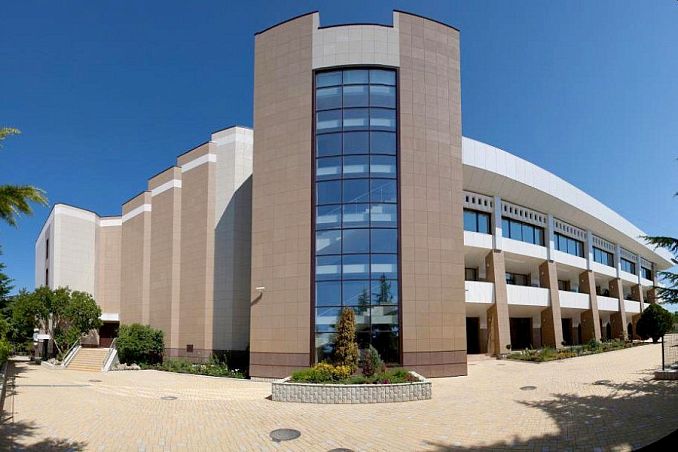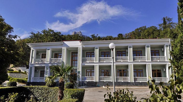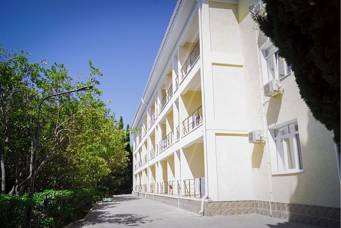 Санаторий «Белоруссия» г.ЯлтаСанаторий Кореиз, ЯлтаСобственный галечный пляж, трансфер на пляж, питание "Заказное меню", крытый бассейн, парковая зона.