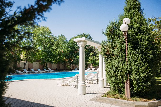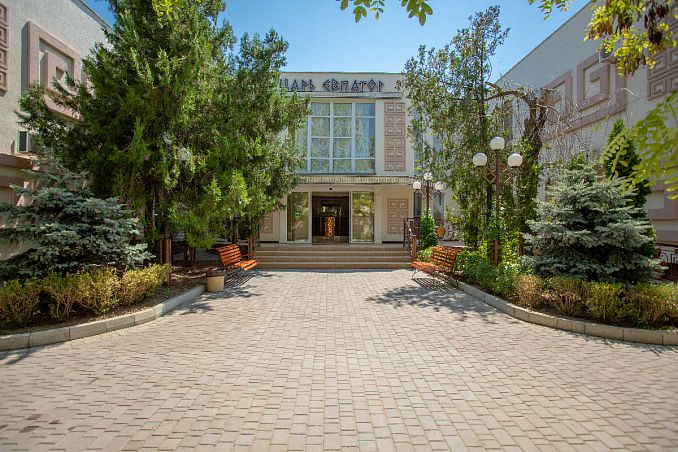 Пансионат "Царь Евпатор"Пансионат Центр Евпатории, ЕвпаторияГородской песчаный пляж в 1 км, питание заказное меню, открытый бассейн с подогревом, анимация.