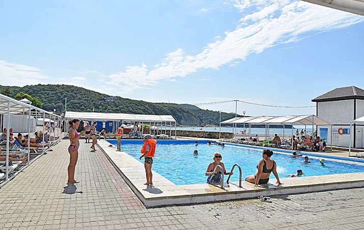 База отдыха "Торнадо" п.НовомихайловскийПансионат Новомихайловский, ТуапсеСобственный галечный пляж в 50-200м, завтрак, отрытый бассейн с пресной водой, кафе и бары, Wi-fi, парковка