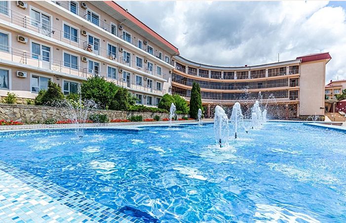 Пансионат "Бургас"Санаторий Адлер, СочиСобственный мелкогалечный пляж в 100м, 3-разовое питание по системе "шведский стол", открытый подогреваемый бассейн