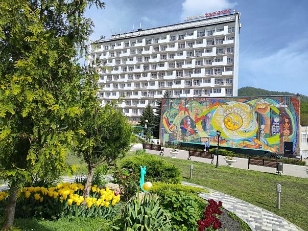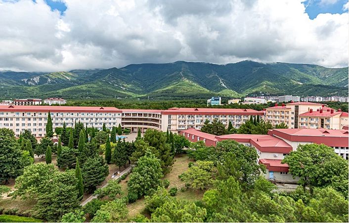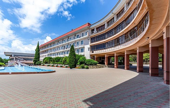 Пансионат с лечением "Горный воздух"Санаторий Лоо, СочиСобственный мелкогалечный пляж в 100м, питание по системе "шведский стол", крытый и открытый бассейн