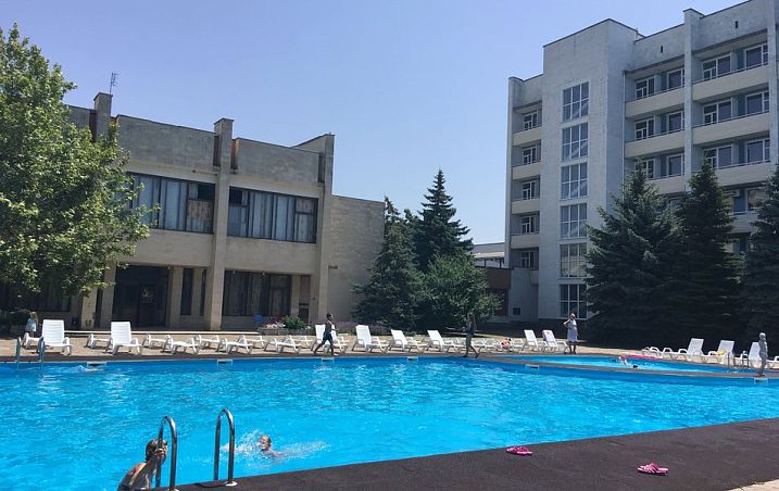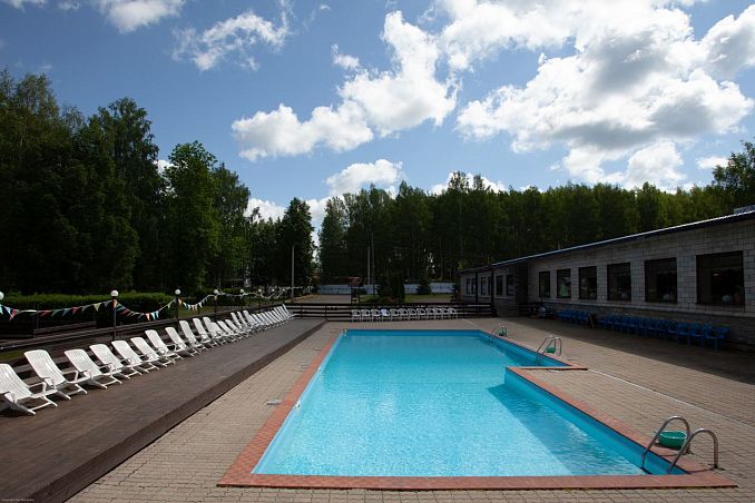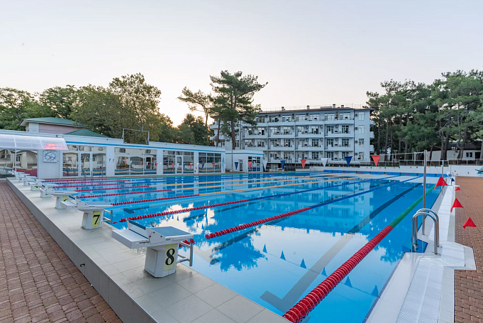 Городской песчаный пляж, питание "заказное меню", крытый бассейн с минеральной водой, собственный бювет.
