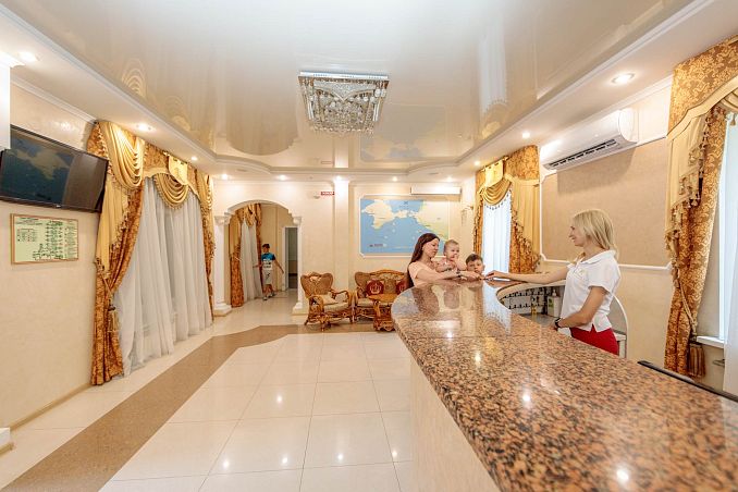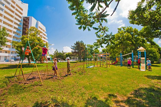 Собственный галечный пляж, питание по системе "шведский стол", открытый бассейн, анимация для взрослых и детей, детская комната.