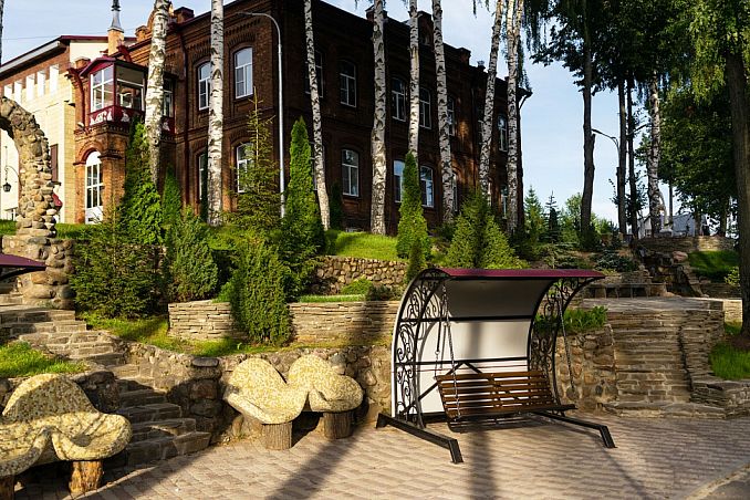 Собственный минеральный бювет, курортный парк в 200м, крытый бассейн, питание по системе "шведский стол"