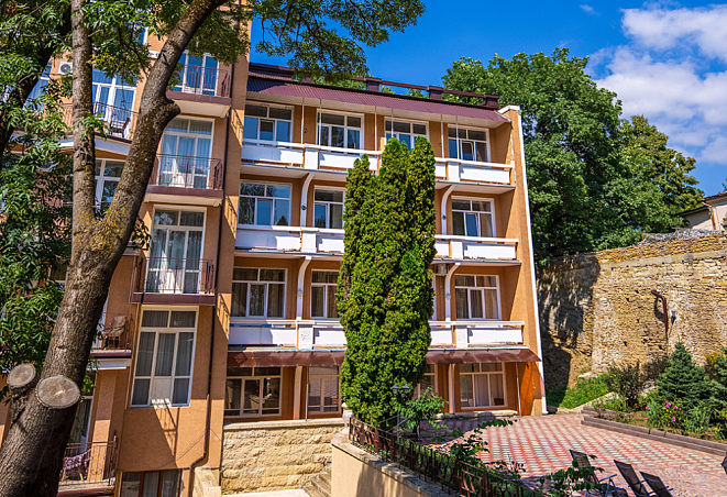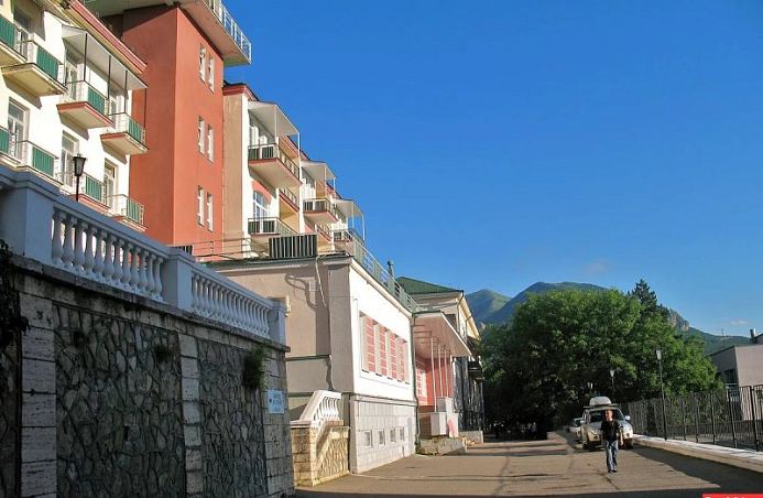 Санаторий "БФО"Санаторий Центр Анапы, АнапаСобственный песчаный пляж в 200м, питание "заказное меню", крытый и открытый бассейн, детская комната, Wi-Fi и парковка