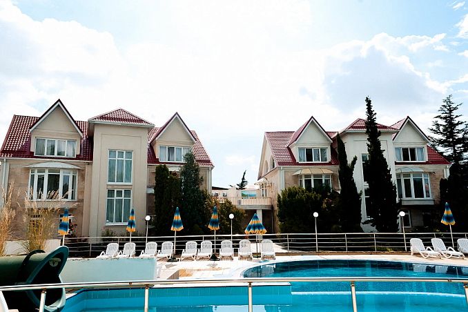 Арт-отель "Азор"Отель Ливадия, ЯлтаГородской галечный пляж в 30м., питание "шведский стол", крытый бассейн с морской водой, открытые бассейны