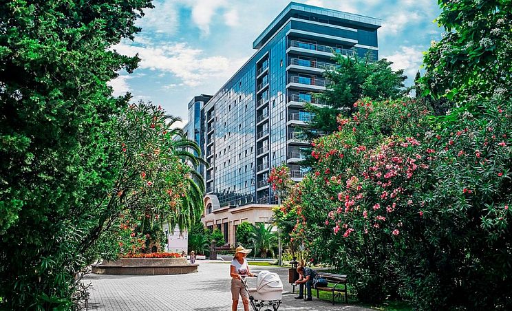 Санаторно-курортный комплекс «АкваЛоо»Санаторий Лоо, СочиСобственный мелкогалечный пляж, питание по системе "Все включено", аквапарк, SPA-комплекс