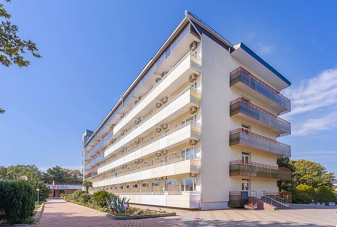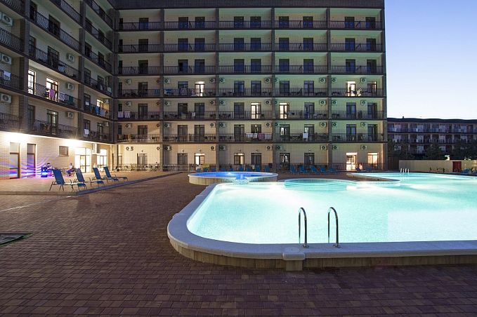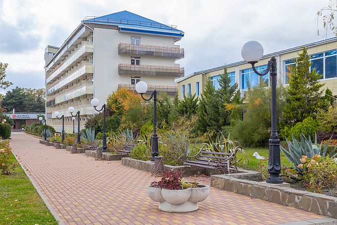 Отель "Азимут Парк отель Прометей Небуг"Санаторий Небуг, ТуапсеСобственный галечный пляж 250м, питание "шведский стол", бар, детская комната, анимация, парковка, Wi-Fi.
