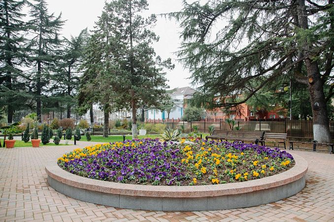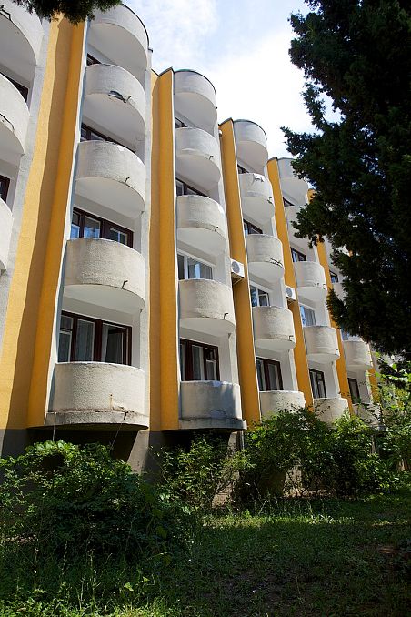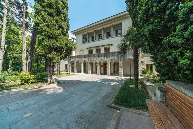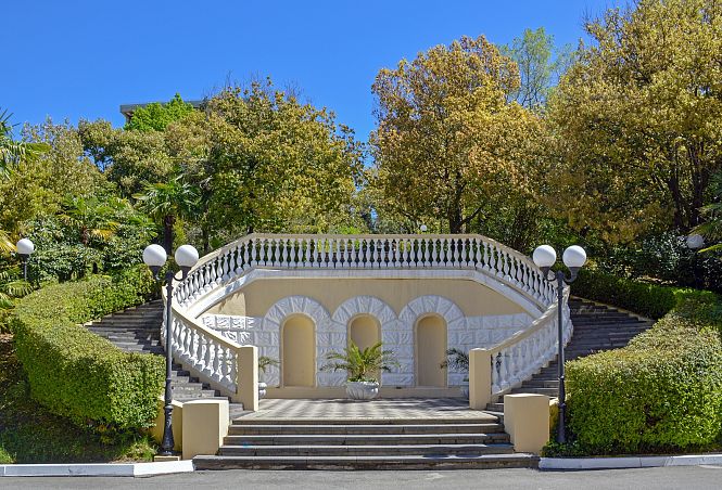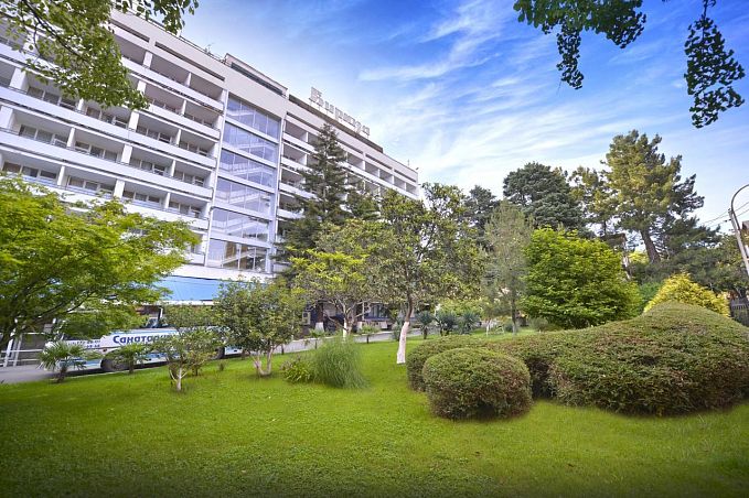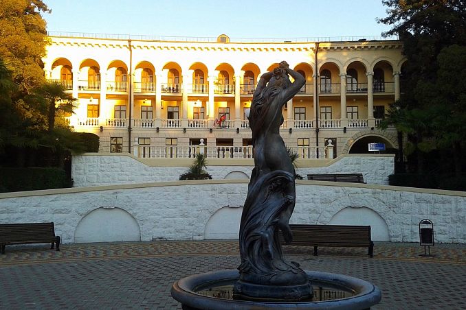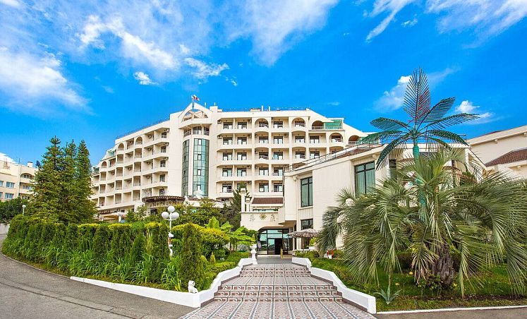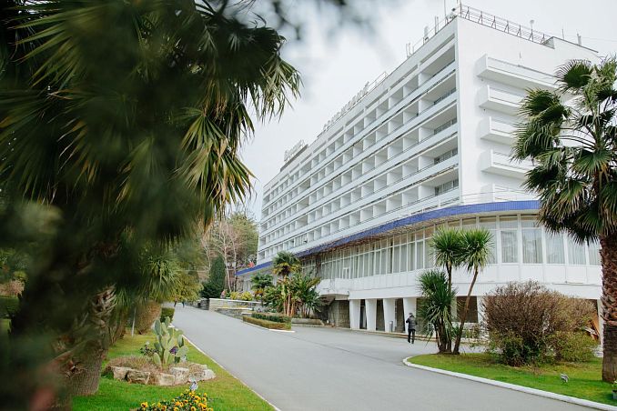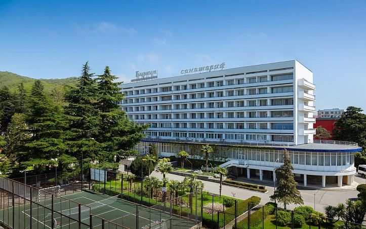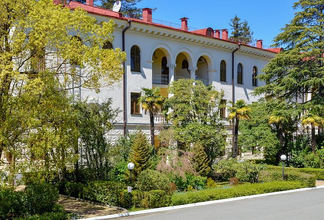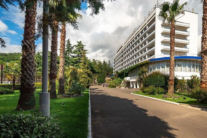Санаторий "Октябрьский"Санаторий Центр Сочи, СочиСобственный галечный пляж, питание по системе "шведский стол", крытый и открытый бассейн, аквапарк, зоопарк, детская комната