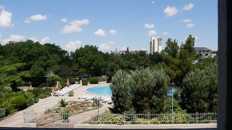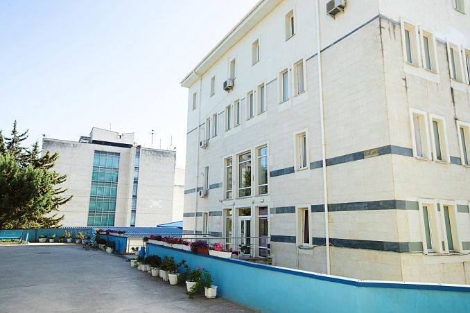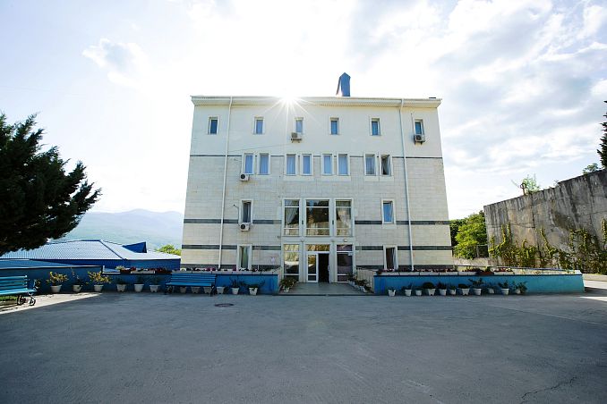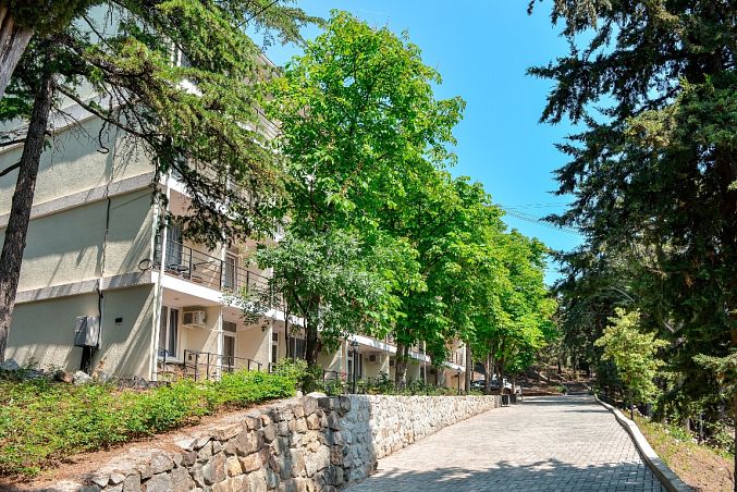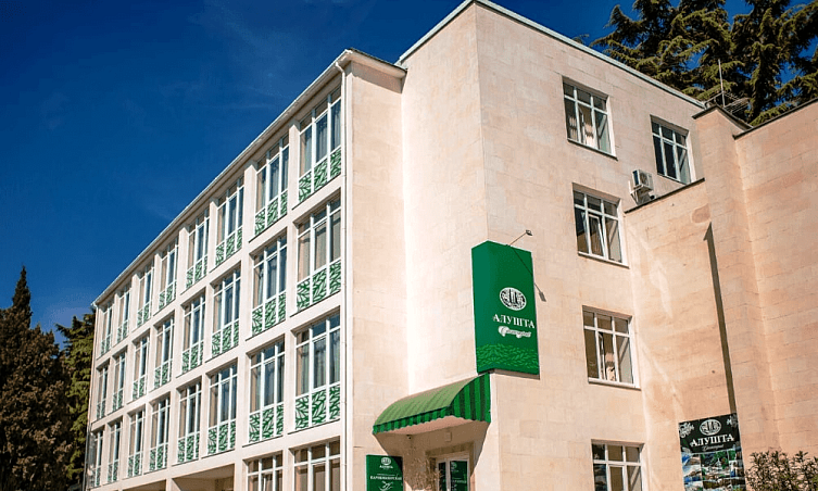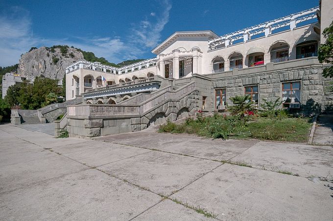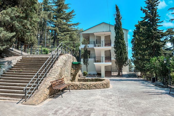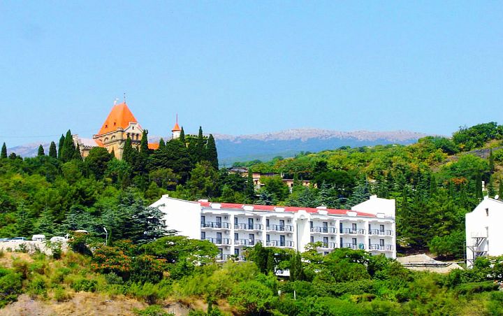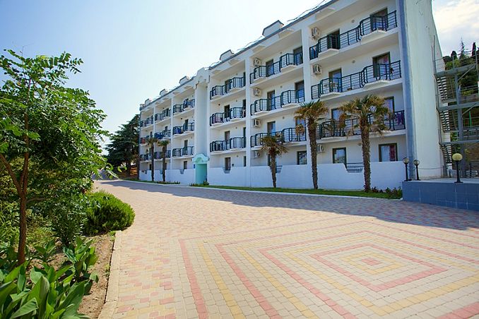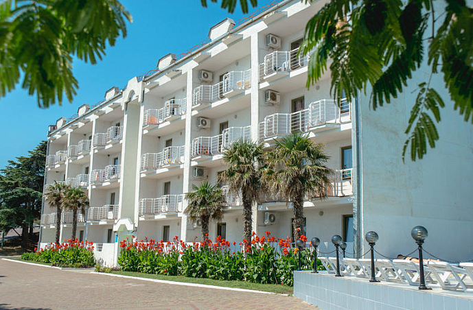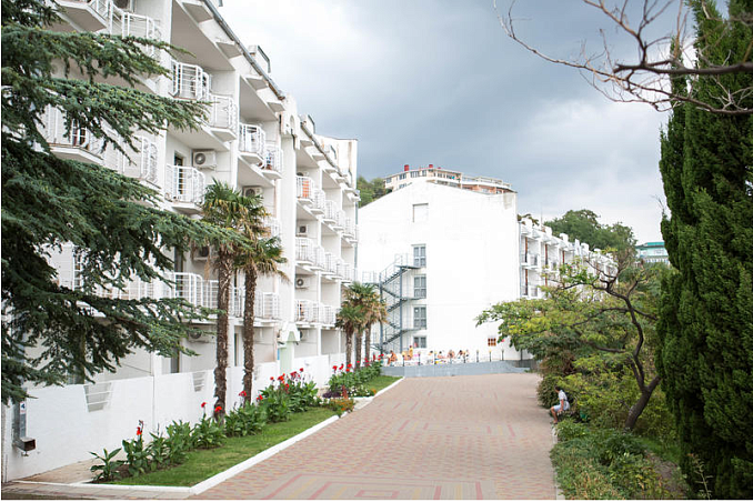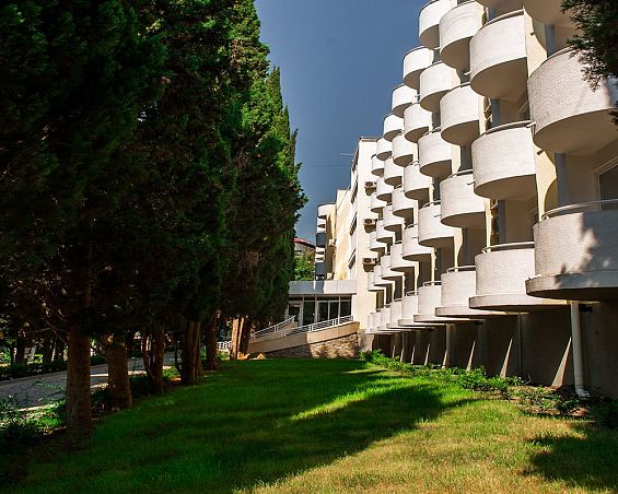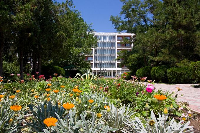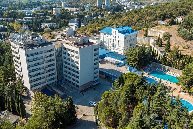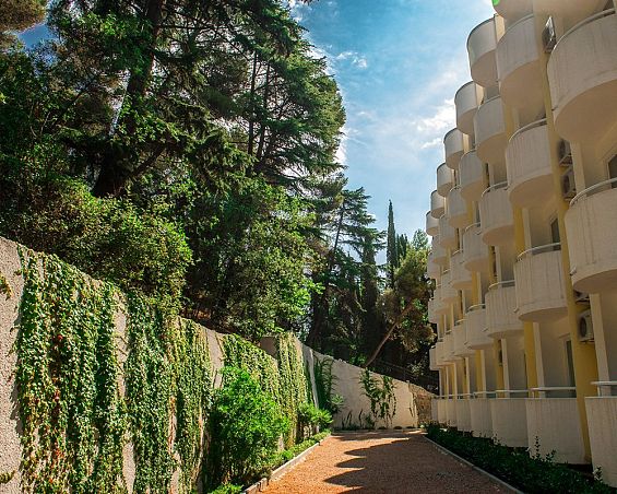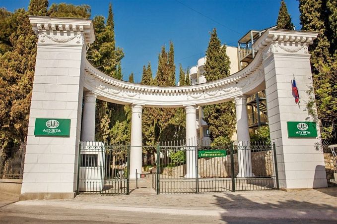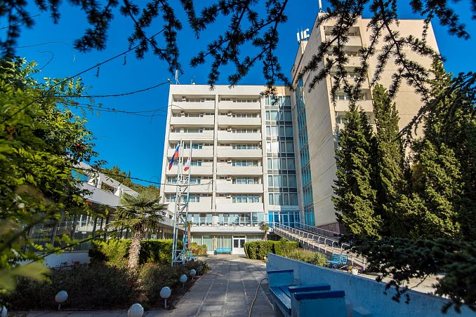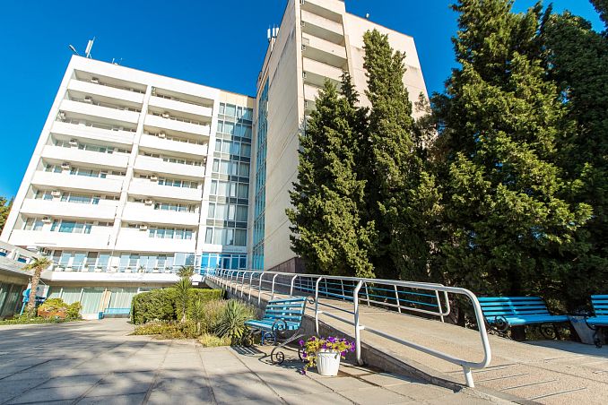 Санаторий "Алушта"Санаторий Центр Алушты, АлуштаСобственный мелко-галечный пляж в 600 м, питание "шведский стол", открытый подогреваемый бассейн