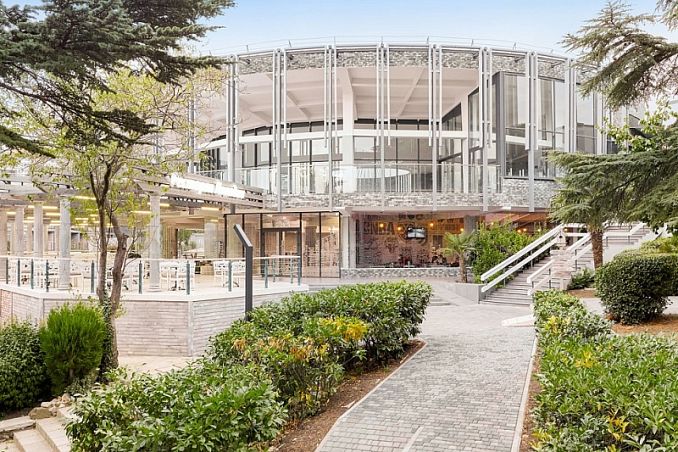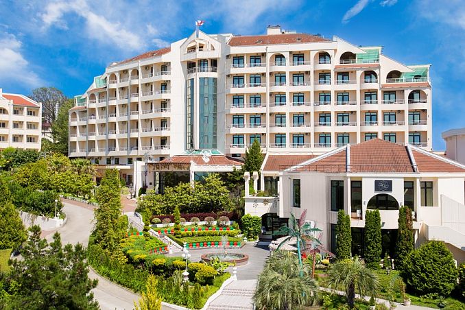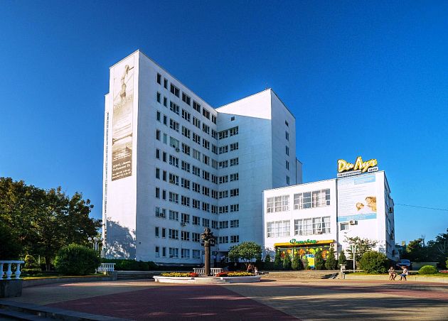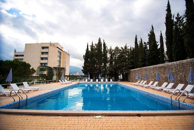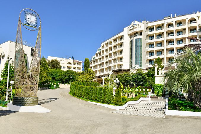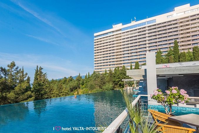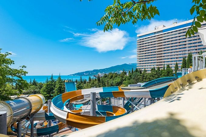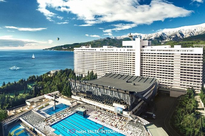 Отель «Ялта-Интурист»Санаторий Центр Ялты, ЯлтаСобственный мелкогалечный пляж, спуск на пляж на лифте, питание "Шведский стол", комплекс открытых бассейнов, аквапарк, анимация