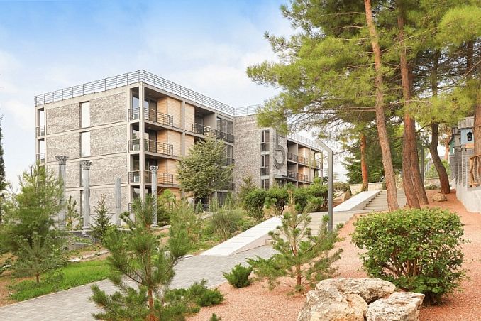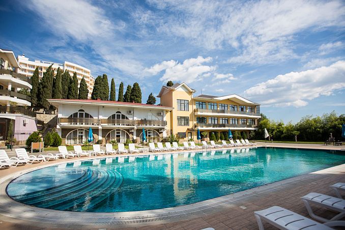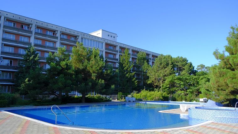 Курортный отель «Таврида Мыс Лукулл»Отель Песчаное, КрымСобственный песчано-галечный пляж в 50 м, питание "Все включено", открытый подогреваемый бассейн, анимация