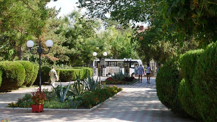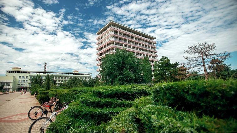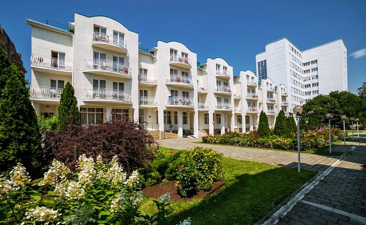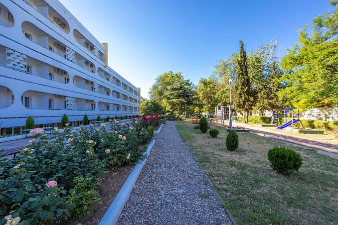Санаторий «Приморье»Санаторий Центр Евпатории, ЕвпаторияСобственный песчаный пляж в 50 м, питание "заказному меню", крытый бассейн с минеральной водой.