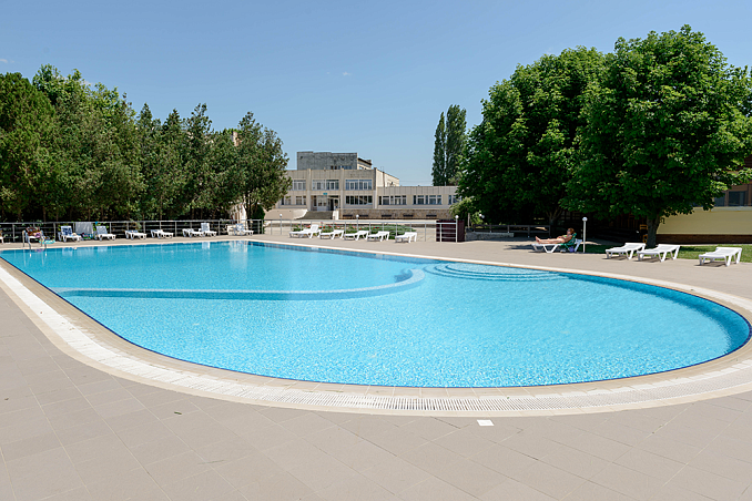 ТОК «Евпатория»Санаторий Центр Евпатории, ЕвпаторияСобственный песчаный пляж, доставка на пляж, питание "шведский стол", открытый не подогреваемый бассейн, анимация.