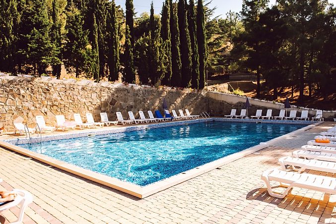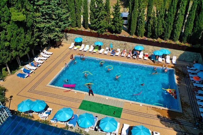 Санаторий "Демерджи"Санаторий Центр Алушты, АлуштаСобственный мелкогалечный пляж в 400м, питание "Шведский стол", открытый подогреваемый бассейн, крытый бассейн, анимация