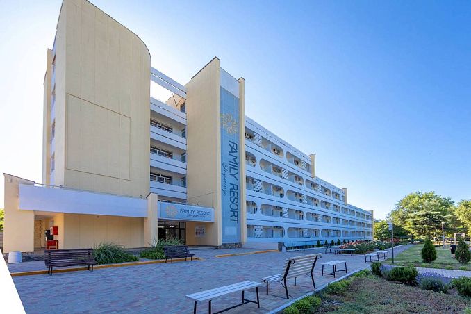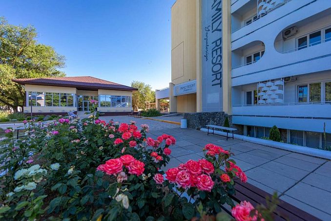 Отель «Family resort»Отель Центр Евпатории, ЕвпаторияСобственный песчаный пляж в 300м., питание "Все включено", открытый бассейн без подогрева, анимация.