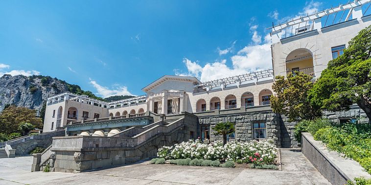 Санаторий «Нижняя Ореанда» п.ОреандаСанаторий Ореанда, ЯлтаСобственный галечный пляж, лифт на пляж, питание "Шведский стол", крытый бассейн с морской водой, открытый бассейн, парковая зона