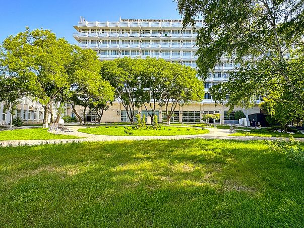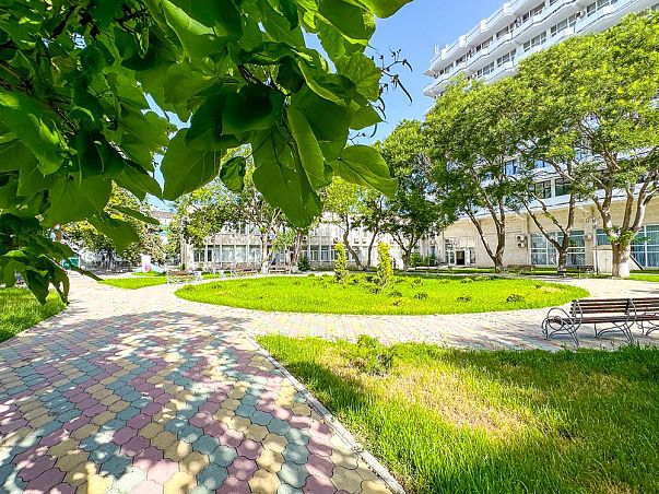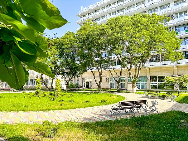 Санаторий "БФО"Санаторий Центр Анапы, АнапаСобственный песчаный пляж в 200м, питание "заказное меню", крытый и открытый бассейн, детская комната, Wi-Fi и парковка
