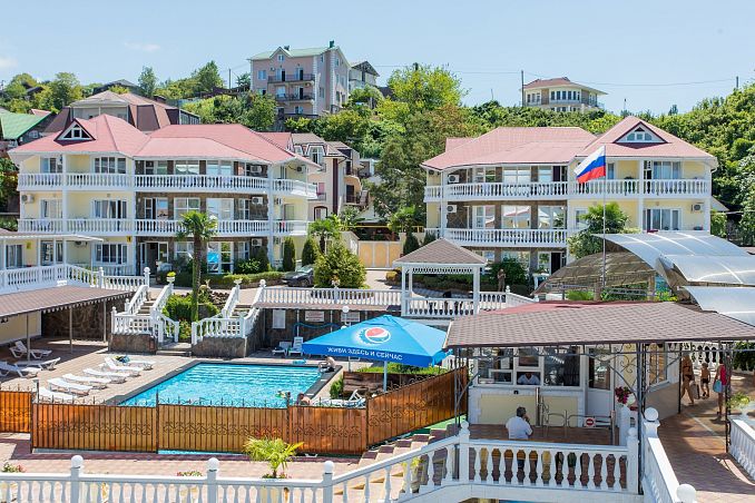 Отель "Греция"Отель Головинка, СочиСобственный галечный пляж в 450 м, питание по системе "шведский стол", открытые подогреваемые бассейны, термальная зона
