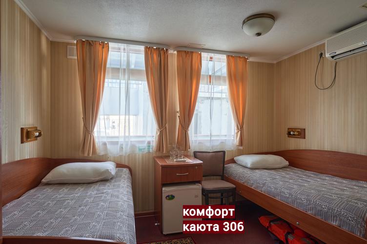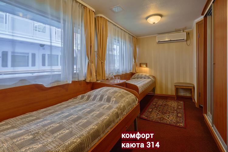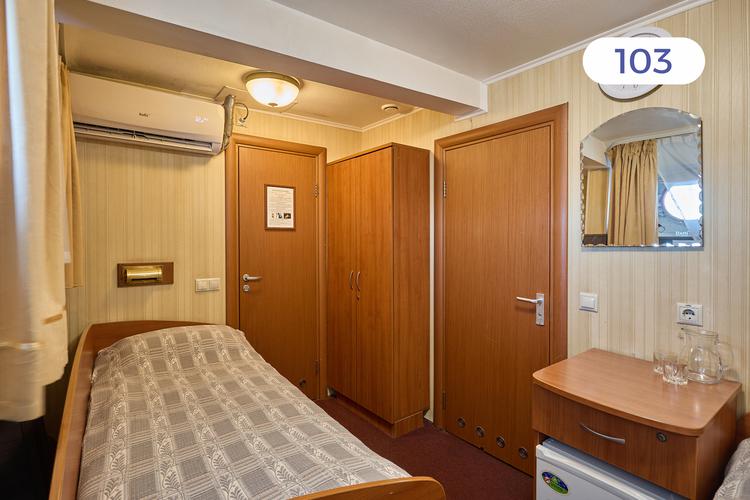 Теплоход «Разумовский» не зря считается теплоходом комфорт-класса. Абсолютно во всех каютах с нижней до верхней палубе есть душ и туалет, система кондиционирования, холодильник и радио. В каютах на шлюпочной и верхней палубах – просторные и уютные балконы.